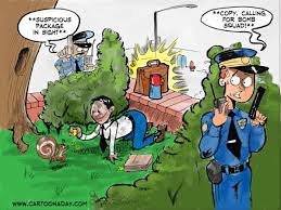 Der Polizist hält das für verdächtig und befiehlt ihm, den Kofferraum zu öffnen. Er schaut hinein und sagt: